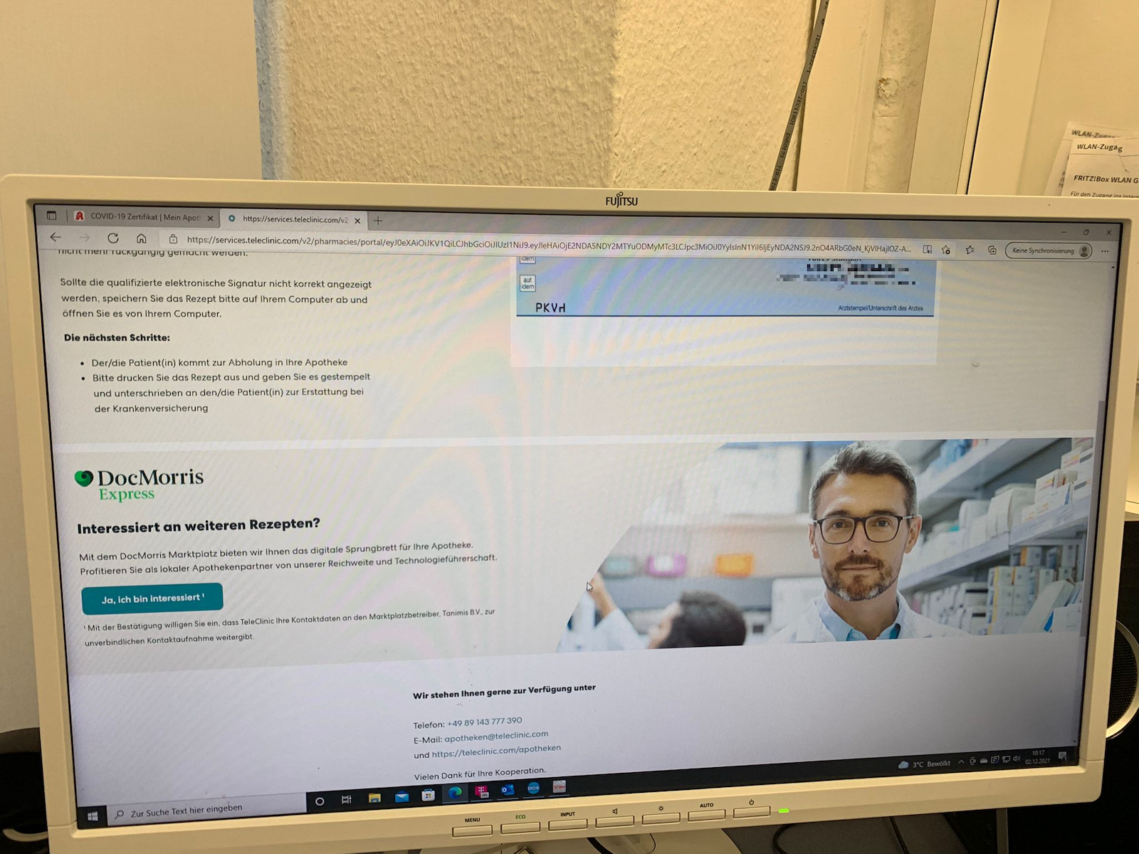 Die flächendeckende Einführung des E-Rezepts könnte noch einmal verschoben werden, private Verordnungen werden allerdings schon digital versendet. Ein Apotheker aus Nordrhein-Westfalen hat jetzt erstmals ein Rezept von Teleclinic geschickt bekommen – mit prominenter Werbung für den Marktplatz von DocMorris.
