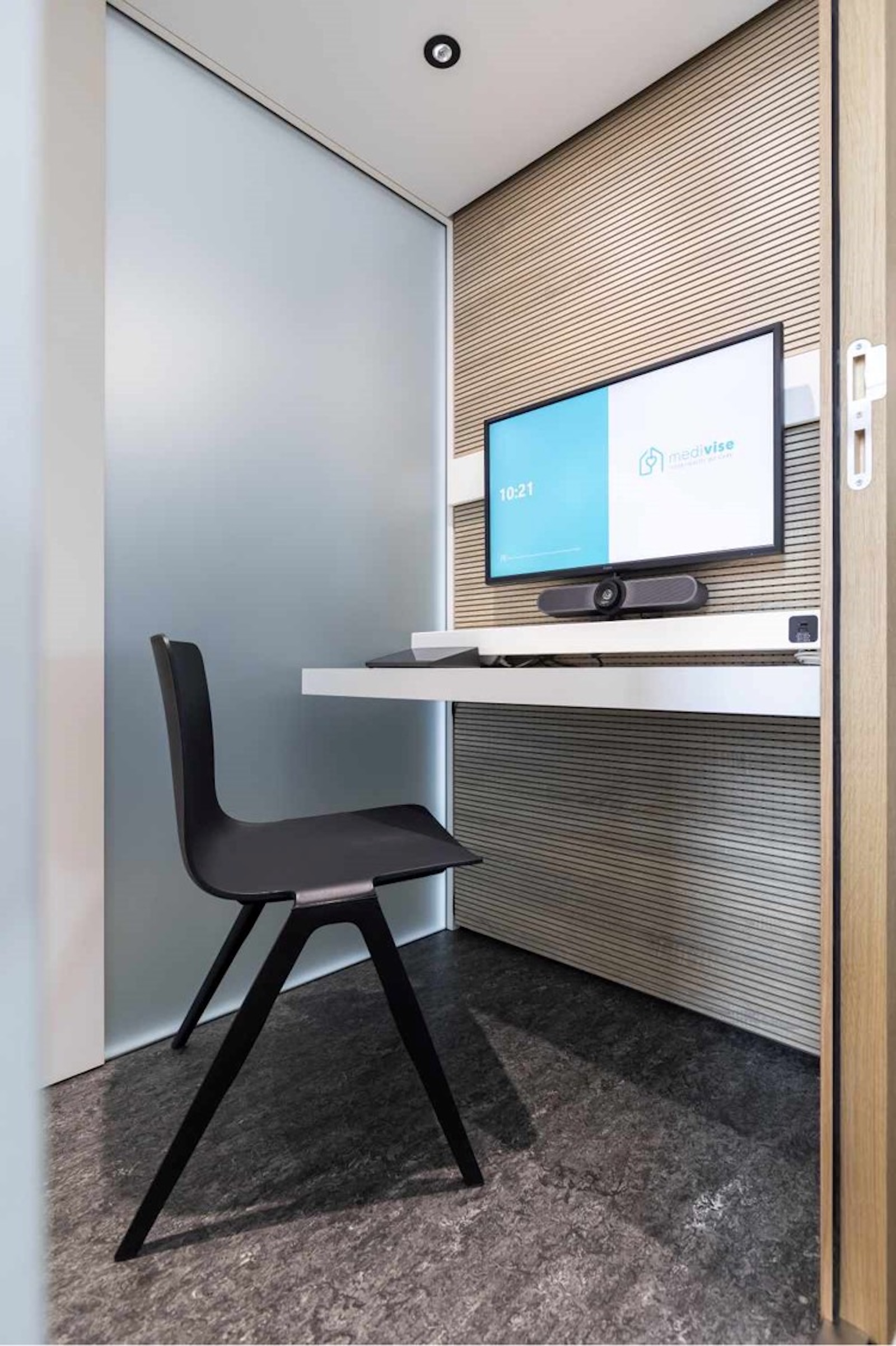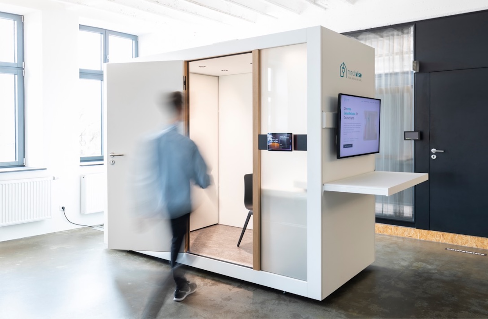 Medivise ist ein Start-up aus Berlin, das eine Box entwickelt hat, in der Videosprechstunden stattfinden können. Das System ist modular aufgebaut, je nach Bedarf sind auch Diagnosegeräte verbaut oder es kann neben dem Patienten eine MTA mit am Gespräch teilnehmen. Es gibt Modelle für den Einsatz innerhalb von Gebäuden oder auch im Freien.