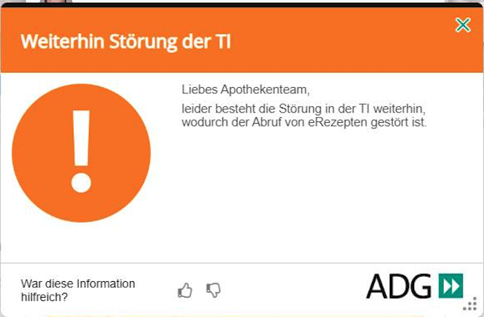 Dienstag, 7.55 Uhr: Erneut informiert die Gematik über die morgentliche Beeinträchtigung beim E-Rezept, wenn es über die elektronische Gesundheitskarte (eGK) abgerufen wird. Wie bereits am Montag, am vergangenen Donnerstag oder vergangenen Montag ist es die Statusabfrage bei Medisign, die Probleme bereitet. Um 9 Uhr soll die Störung behoben sein – Apothekenangestellten wird wieder empfohlen, die Gesundheitskarte mehrfach ein- und auszustecken.