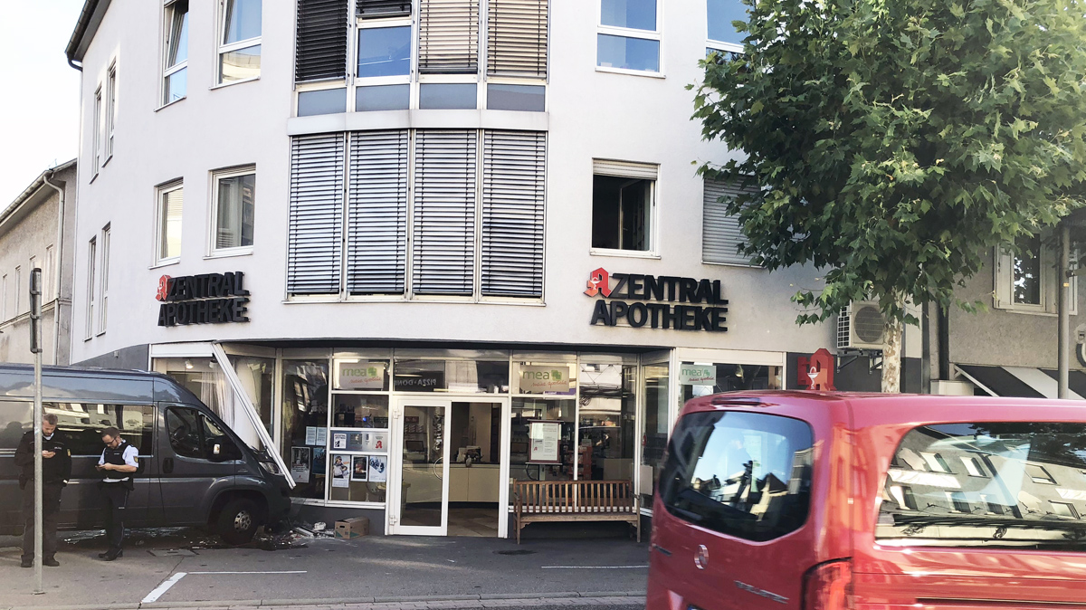 In der Apotheke gab es keine Verletzten. Der Jeep demolierte ein Eingangsschild, zerstörte den Hintereingang komplett und hob den 1200 Kilo schweren Transformator aus seiner Verankerung. Als Folge fiel in der gesamten Filiale der Strom aus. Vorübergehend musste der Verkauf eingestellt werden. Erst nach Stunden konnte der Betrieb mit einem Notstromgenerator wieder aufgenommen werden. Die Reparaturen dauerten den gesamten Mittwoch. Herausgerissene Stromleitungen mussten wieder in der Wand verankert, parallel dazu Teile der Hauswand erneuert werden.