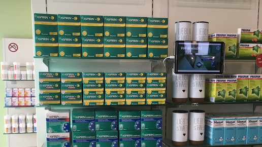 Derzeit werden nach Angaben des Apothekers vier Produkte auf diese Weise beworben – alle selbstverständlich von Bayer: Iberogast, Bepanthen, Aspirin Complex sowie Supradyn vital 50Plus. Während für jüngere Kundinnen Iberogast-Werbung eingespielt wird, bekommen ältere Frauen Supradyn vorgesetzt. Bei Männern, egal welchen Alters, wird Aspirin beworben. Die Testphase soll zunächst drei Monate dauern.