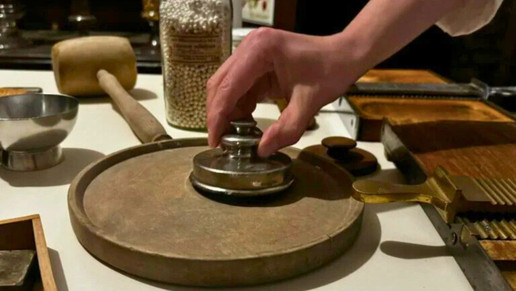 Im größten Raum des Kellers wird klar, warum Apothekerinnen und Apotheker auch unter dem Namen „Pillendreher“ bekannt sind. Achmüller demonstriert dabei auf einem Pillenbrett, wie aus der Pillen-Rohmasse zunächst kleine Rohlinge entstehen. Mit einem speziellen Aufsatz, dem sogenanntem Pillendreher, formt man diese anschließend zu fertigen Pillen. „Für edle Herrschaften bestand dann noch die Möglichkeit eines Pillenüberzugs mit Gold-, oder Silberfolie. Hierzu wurde die Pille zum Beispiel in eine Büchse mit Blattgold gelegt und rolliert.“ Grinsend fügt er hinzu: „Die haben wir hier aber nicht mehr.“