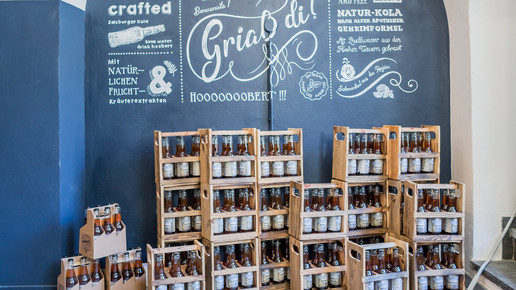 Inzwischen sind neben einigen Gastronomiebetrieben auch die Drogeriekette dm und Lebensmittelriese Spar auf den Geschmack gekommen und haben die Apothekercola österreichweit gelistet. Seit Kurzem bietet der Apotheker sein Produkt auch im eigenen Flagshipstore in Salzburg an. Neben der Cola, die es inzwischen auch in der koffeinfreien Variante gibt, findet man dort handgemachte Produkte wie Holzspielzeug und regionale Spezialitäten. „Wir wollen ein Marktplatz für heimische Qualitätsprodukte sein und uns bewusst gegen die großen Ketten stellen“, so Windhager. Der Apotheker wünscht sich, dass sich um sein Produkt eine echte Trinkkultur wie bei Kaffee und Wein entwickelt. „Wir möchten nicht, dass unser Kola aus der Flasche getrunken wird, sondern auf Eis mit zwei Scheiben Limette“, sagt er.