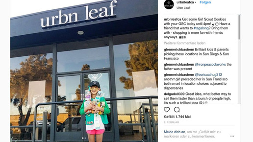 Die Cannabis-Apotheke hat das Mädchen nach Kräften unterstützt. Die Betreiber posteten ein Foto mit der Pfadfinderin auf Instagram und schrieben: „Holt euch ein paar Pfadfinderkekse!“ Sie forderten außerdem alle Kunden auf, auch Freunde zum Einkaufen mitzubringen. Denn einkaufen mache mit Freunden mehr Spaß.