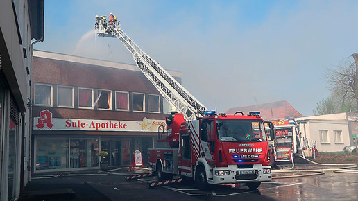 Die Apotheke und die benachbarte Augenklinik wurden vom Feuer komplett zerstört. Sie gehörten zu einem Gebäudekomplex, der auch eine Zahnklinik und Augenoptiker beherbergt. Direkt gegenüber steht die örtliche Polizeidienststelle.