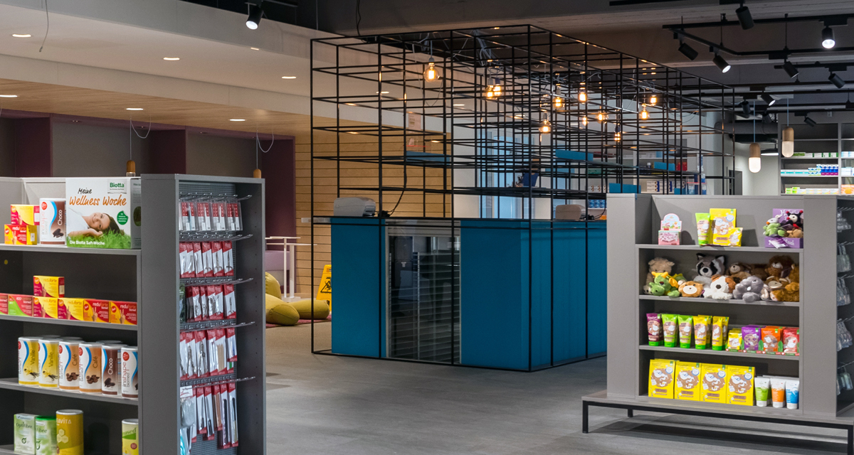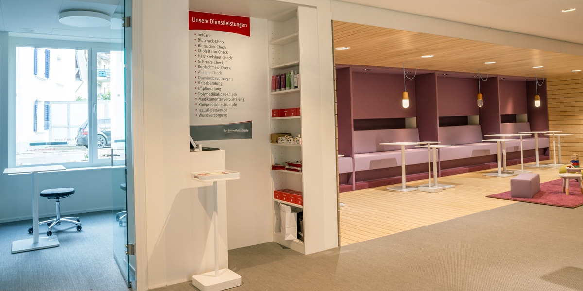 Eine moderne und innovative Apotheke in einer ländlichen Region statt in der Fußgängerzone einer Großstadt? Was auf den ersten Blick verwundern mag, sei kein Zufall, sagt Vaucher: „Die Lage auf dem Land hat auch ihre Vorteile.“ Da wäre beispielsweise die vergleichsweise günstige Miete, was bei der hohen Quadratmeterzahl Einiges ausmacht. Auch sei die Apothekendichte und damit der Konkurrenzdruck nicht so hoch. „So können wir relativ risikoarm experimentieren, ob das neue Konzept funktioniert und bei den Kunden ankommt“, erläutert Vaucher.