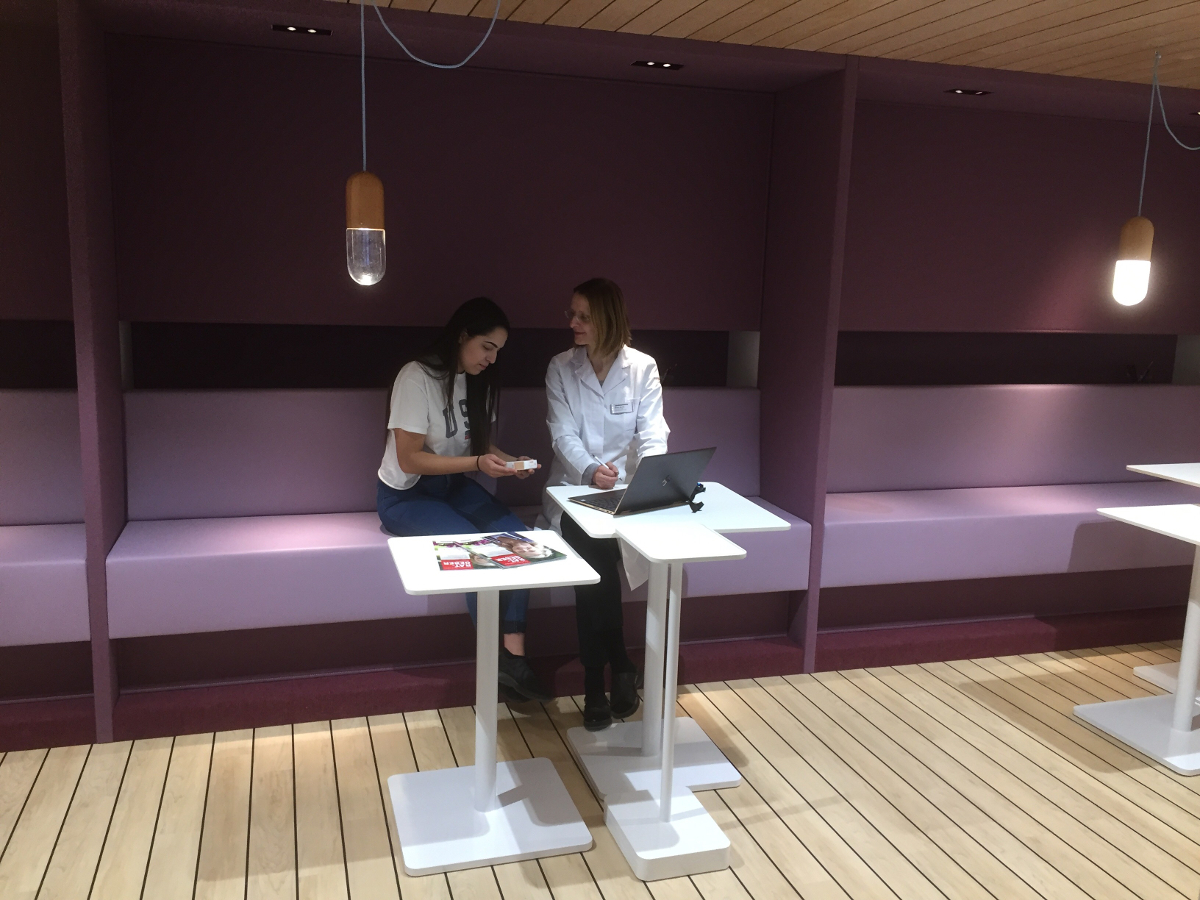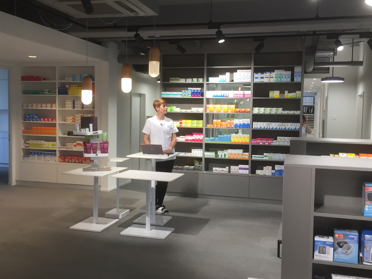 Das neue Konzept führt auch zu neuen Prozessen. „In einer klassischen Apotheke wartet der Apotheker hinter dem HV-Tisch, bis die Patienten zu ihm kommen“, erläutert Vaucher. „Bei uns sind die Mitarbeiter im Raum unterwegs, achten auf die Signale der Kunden und holen sie dort ab, wo sie gerade sind.“ So würden diese Begegnungen sehr individuell und persönlich. Das erfordert aber nicht nur bei den Kunden, sondern auch bei den Mitarbeitern ein Umdenken. „Schon im Bewerbungsgespräch haben wir deshalb darauf geachtet, dass wir kommunikationsstarke und offene Menschen auswählen“, berichtet Wilders, die zunächst ein Team von fünf Mitarbeitern führt. „Und dennoch: Auch wenn es insgesamt schon ganz gut funktioniert, fallen sie immer wieder in alte Verhaltensmuster zurück.“