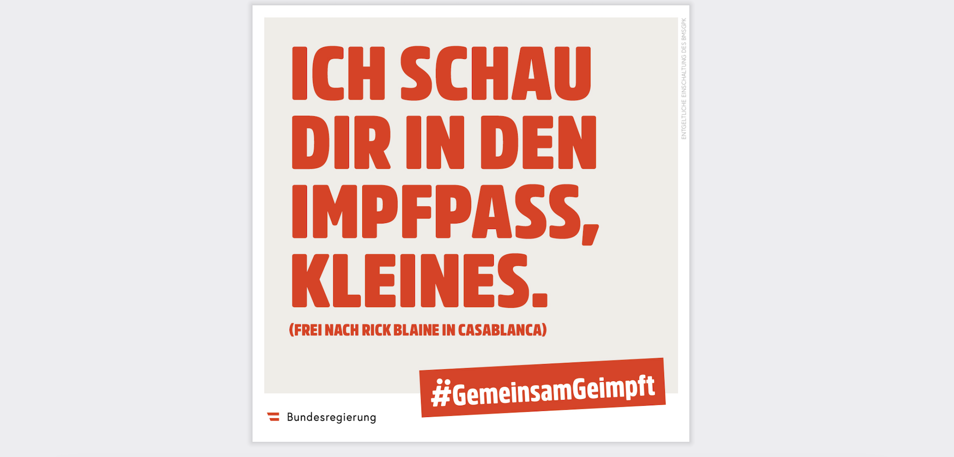 Michael Häupl, Herzog Rudolf IV., Andreas Hofer und Jedermann: Das sind nur einige Persönlichkeiten, die in der nächsten Phase der Corona-Impfkampagne der österreichischen Bundesregierung zitiert werden. In den Wochen bis Weihnachten wandelt die Kampagne #GemeinsamGeimpft bekannte Zitate ab, um für die Corona-Schutzimpfung zu werben: