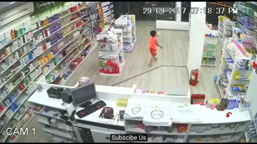 Während der Vater den Mitarbeiter in ein Gespräch verwickelt, plündert sein Kind die Kasse. Aufgenommen wurde der Vorgang in Ra’s al-Chaima, Vereinigte Arabische Emirate.