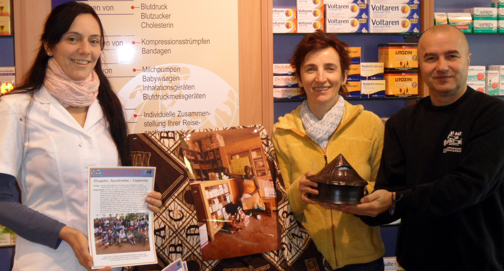 Also setzte Rischer in den kommenden Monaten alles in Bewegung. „Wir haben gesammelt, gesammelt, gesammelt“, sagt er. Er hielt Vorträge und legte die Eintrittsgelder zusammen, rief in sozialen Medien zu Spenden auf, sprach bei Firmen vor und fand Verbündete – unter anderem Apothekerin Doreen Feustel. Die Inhaberin der Stadt-Apotheke in Rischers Heimatort Pausa beteiligte sich kräftig am Geldsammeln, richtete ein Schaufenster mit Bildern von Rischers Uganda-Reise ein, verkaufte Kalender und stellte eine Spendenbox in der Apotheke auf.