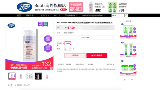 Auf Tmall Global, der Plattform, auf der AliBaba Produkte internationaler Anbieter vertreibt, sind nun auch die Walgreens-Marken No7, Soap Glory und Boots Cucumber erhältlich. Mehr sollen folgen. Das Angebote „spiegelt die wachsende Erfahrung und den zunehmenden Hunger der chinesischen Konsumenten nach hochqualitativen internationalen Beauty-Marken“, drückt Walgreens es aus.