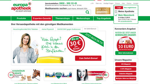 Bei einem Bestellwert von mindestens 19 Euro oder alternativ Einreichung eines Rezepts kommt die Ware versandkostenfrei ins Haus. Für jedes Rezept mit mindestens einem verschreibungspflichtigen Medikament gibt es bei DocMorris weiterhin einen garantierten Mindestbonus von 2,50 Euro. Bei einem Rezept mit sechs Packungen ergibt sich so ein Gesamtbonus von 15 Euro, der als Obergrenze auch beworben wird. Außerdem erhalten Neukunden einen Bonus von 10 Euro.