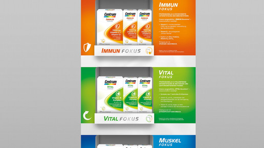Centrum Immun Fokus enthält neben 1000 mg Vitamin C auch Vitamin D, Zink und Folsäure. Die Sticks werden als Trinkgranulat zum Auflösen in Wasser erhältlich sein und sollen die Ernährung sinnvoll ergänzen und ein normales Immunsystem unterstützen. Gegen Muskelkrämpfe kommt Centrum Muskel Fokus im Januar auf den Markt. Das Trinkgranulat enthält die Kombination aus Magnesium und Kalium und soll zu einer normalen Muskelfunktion beitragen. Die dritte Neueinführung der Centrum-Familie ist Vital Fokus. Das Direktgranulat enthält unter anderem die Vitamine B2, B6 sowie B12 und soll Müdigkeit und Erschöpfung entgegenwirken.