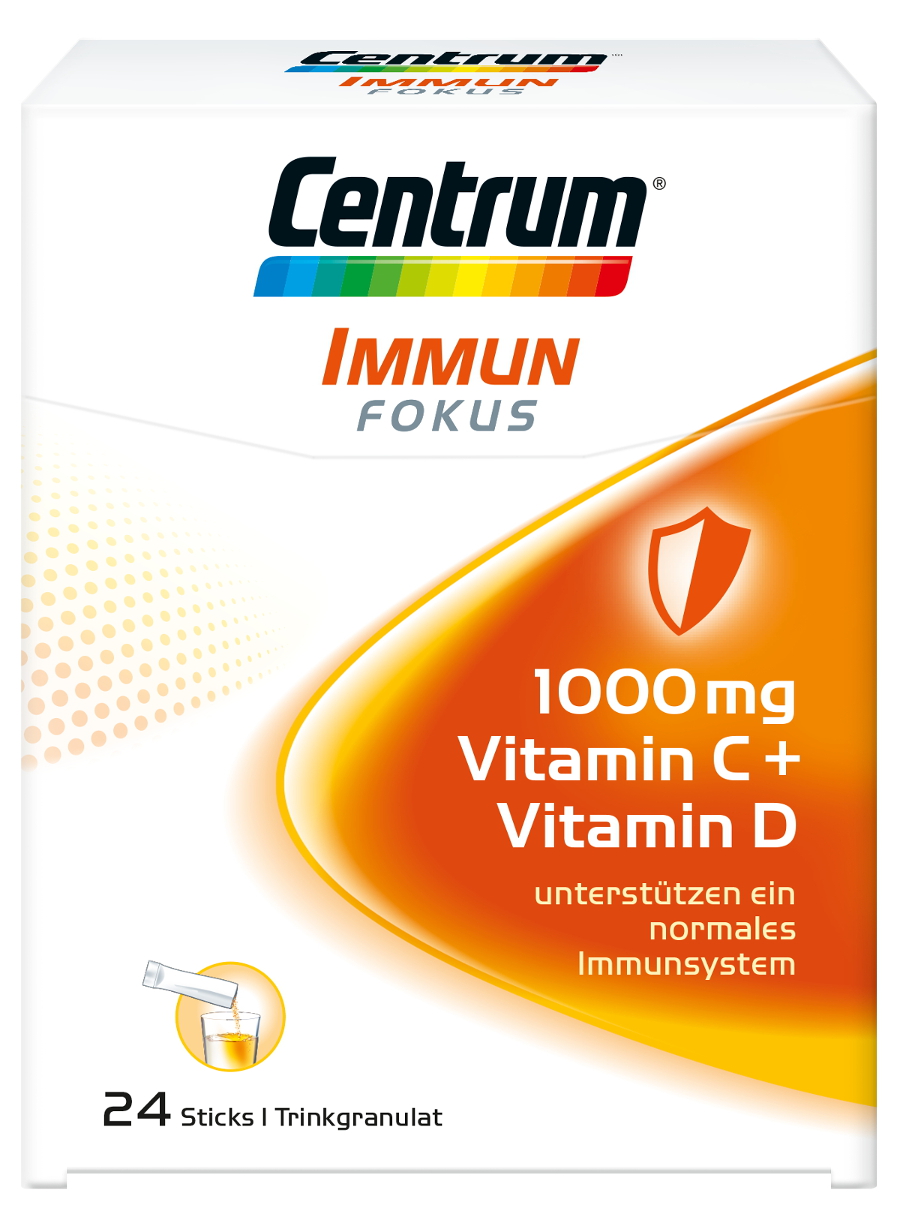 Centrum Immun Fokus enthält neben 1000 mg Vitamin C auch Vitamin D, Zink und Folsäure. Die Sticks werden als Trinkgranulat zum Auflösen in Wasser erhältlich sein und sollen die Ernährung sinnvoll ergänzen und ein normales Immunsystem unterstützen. Gegen Muskelkrämpfe kommt Centrum Muskel Fokus im Januar auf den Markt. Das Trinkgranulat enthält die Kombination aus Magnesium und Kalium und soll zu einer normalen Muskelfunktion beitragen. Die dritte Neueinführung der Centrum-Familie ist Vital Fokus. Das Direktgranulat enthält unter anderem die Vitamine B2, B6 sowie B12 und soll Müdigkeit und Erschöpfung entgegenwirken.