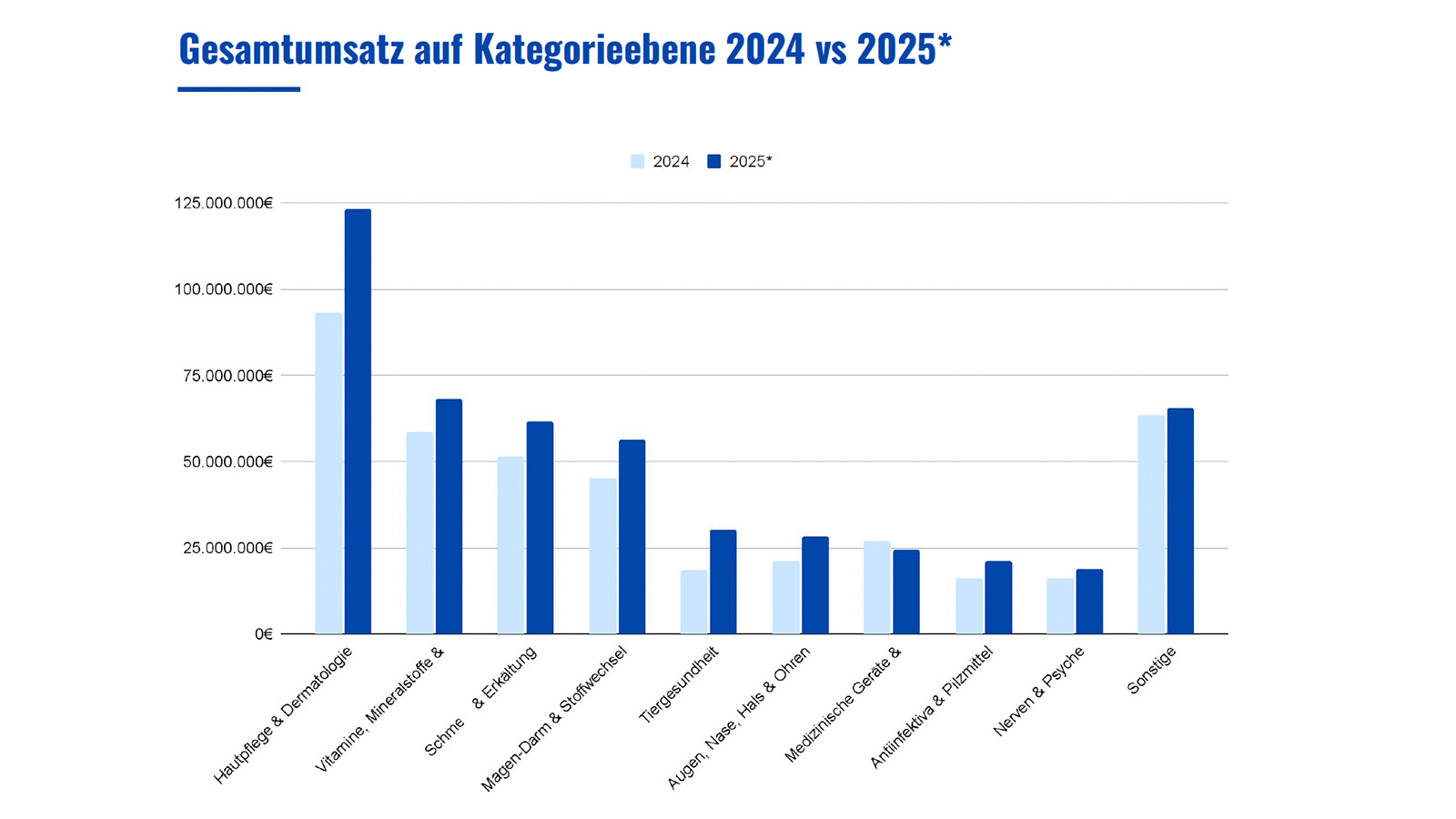 Gleichzeitig werde der Markt weiterhin von etablierten Marken mit starker Markenbekanntheit und breitem Sortiment dominiert, darunter La Roche-Posay (180 PZN), Doppelherz (252 PZN), Ratiopharm (264 PZN), Weleda (242 PZN) und Eucerin (145 PZN). „Diese profitieren von hohem Vertrauen und flächendeckender Präsenz, benötigen aber höheren Aufwand in der Aussteuerung des breiten Sortiments.“