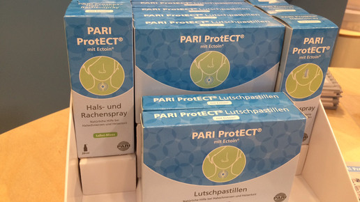 Seit Oktober setzt auch Pari auf Ectoin. Das Unternehmen aus Wuppertal hat seit vergangenem Jahr Hals- und Rachenspray, Lutschtabletten und Nasenspray auf dem Markt. Allerdings liegt der Fokus hier auf der Indikation Erkältung. Der Naturstoff schützt salzliebende Bakterien vor extremen Umweltbedingungen. Das Zellschutzmolekül besitzt stark wasserbindende Eigenschaften und bildet laut Pari einen Ectoin-Hydrokomplex. Dieser könne bei den ersten Anzeichen einer Erkältung schützend, befeuchtend, beruhigend und leicht entzündungshemmend wirksam sein. Die Präparate sollen die trockenen und irritierten Schleimhäute in Mund, Rachen oder Nase befeuchten und den Regenerationsprozess unterstützen. Die einprozentigen Lutschpastillen gibt es mit Waldfruchtgeschmack, das Ectoin-haltige Nasenspray ist zu 2 Prozent zu haben.