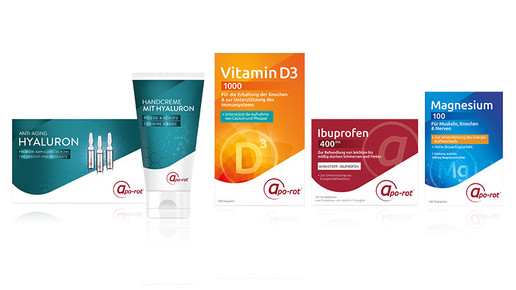 2009 führte Apo-Rot die ersten Eigenmarken ein, den Anfang machen Handcreme und Körperlotion. Mittlerweile umfasst das Portfolio 40 Produkte aus den Bereichen Medikamente, Nahrungsergänzungsmittel und Hautpflege. Die Produkte müssen zusammen passen und online und offline gut bewertet werden. Online machen die Eigenmarken einen Anteil im einstelligen Prozentbereich aus. Im vergangenen Jahr hatte Apo-Rot mit Lieferantenausfällen zu kämpfen und musste sich neue Zulieferer suchen. 2018 soll der Umsatz mit Eigenmarken verdoppelt werden. Denn hier ist die Marge um ein Vielfaches attraktiver als im klassischen Versand. Dabei soll unter anderem ein neues Design helfen.