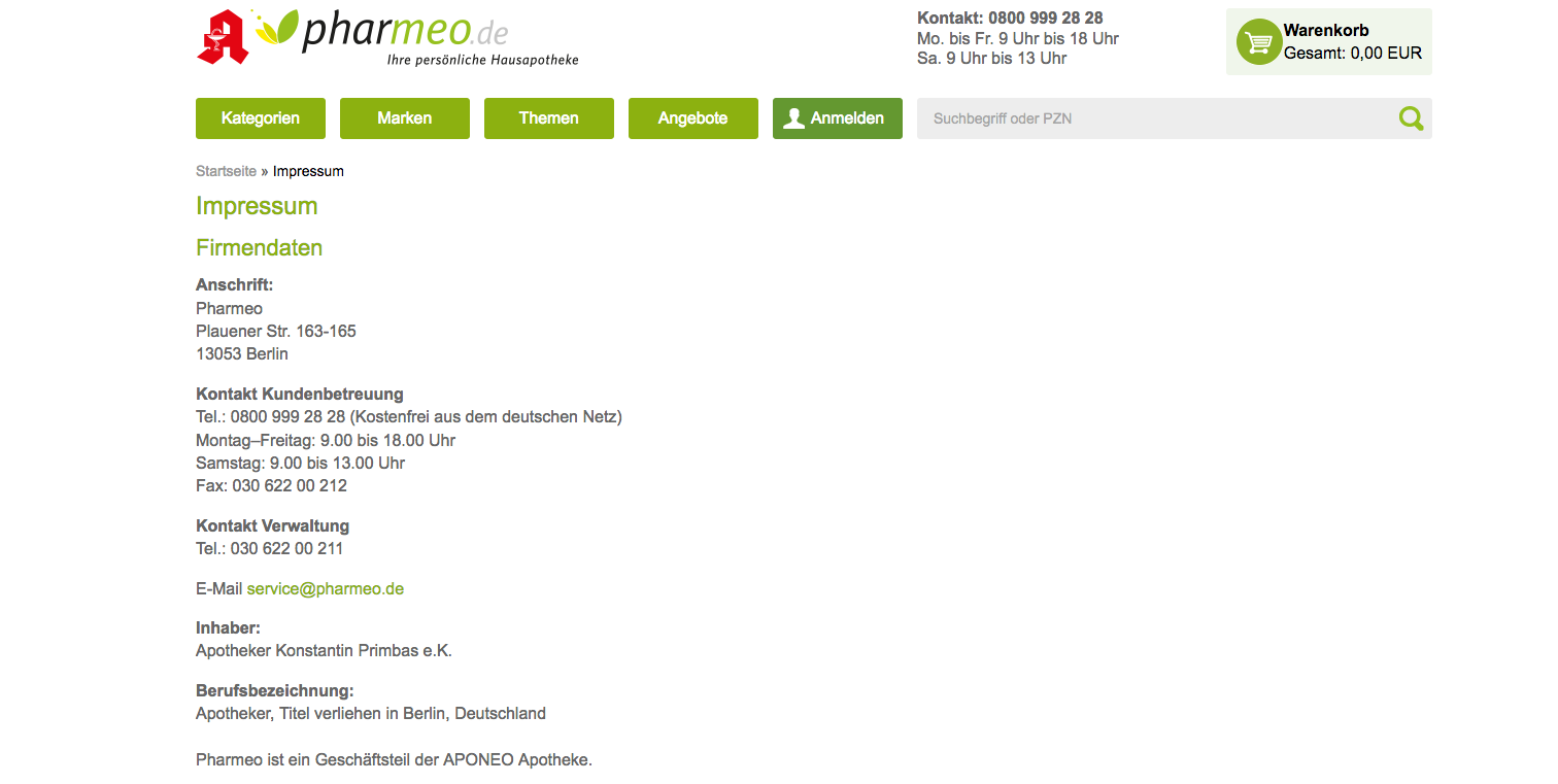 Der Kreis der namhaften deutschen Versandapotheken wird immer überschaubarer. Dazu zählen Medikamente per Klick, Apotal und Apo-Discounter, Volksversand, Sanicare, Mycare und eben Aponeo.