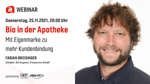 Das APOTHEKE ADHOC Webinar „Bio in der Apotheke – Mit Eigenmarke zu mehr Kundenbindung“ wird heute um 20 Uhr live ausgestrahlt. APOTHEKE ADHOC Webinar ist das kostenlose E-Learning-Angebot für Apothekenteams – Die Registrierung ist 24/7 unter webinar.apotheke-adhoc.de möglich.