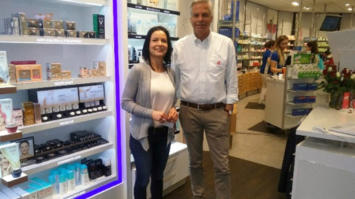 Hanns-Heinrich Kehr, geschäftsführender Gesellschafter von Kehr, besuchte die City Apotheke in Langenhagen. Annika Schmidt, PTA, MTA und Assistentin des Apothekenleiters, erklärte die Warenlogistik, deren Herzstück ein Kommissionierautomat ist. Die Mitarbeiterin gab dem Großhandelschef auch Vorschläge für Verbesserungen im Bereich der Seminarvortragspakete und bei der Gestaltung von.
