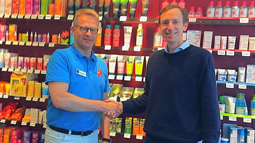 Der neu gewählte Präsident der Apothekenkammer Schleswig-Holstein und Inhaber der Birk-Apotheke Dr. Kai Christiansen in Gelting erhielt Besuch von Christian Jenne, ebenfalls Gesellschafter bei Max Jenne. Themen waren Mitarbeiterwerbung, -ausbildung und -bindung. „Die sachlichen und konstruktiven Ansätze von Dr. Christiansen haben mich überzeugt“, so Jenne. „Gutes und qualifiziertes Personal ist und bleibt ein wesentlicher Faktor für den Unternehmenserfolg“.