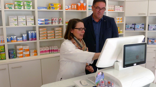 Sascha Greis, Vertriebsleiter bei Fiebig, wurde in der Hebel-Apotheke in Hemsbach über zeitintensive Abläufe und die umfangreichen gesetzlichen Vorschriften im Tagesgeschäft der Apotheke informiert. „Es ist unglaublich, welch hohe Anforderungen in punkto Organisation und Verwaltung an das Backoffice einer Apotheke gestellt werden. Schade, dass durch den zunehmenden Papierkrieg in den Apotheken oftmals zu wenig Zeit für die Kunden bleibt“, so Greis.