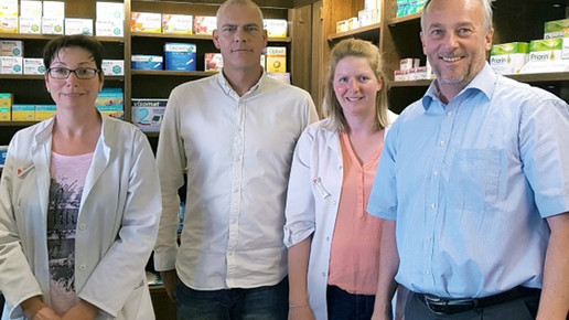 In der Central Apotheke in Kiel war Dorothée Bierbaum, Gesellschafterin beim Pharmagroßhandel Max Jenne, zu Gast. Mit Apothekeninhaber Dr. Uwe Schersch diskutierte sie über Themen wie die Datenschutzgrundverordnung, die immer schwieriger werdende Personalsuche, das Ausbildungssystem für PTA sowie das zeitintensive Qualitätsmanagement. „Aus kaufmännischer Sicht hat mich der hohe Aufwand zur Kontrolle der Rezepte vor der Einreichung beim Rechenzentrum beeindruckt“, sagt Bierbaum.
