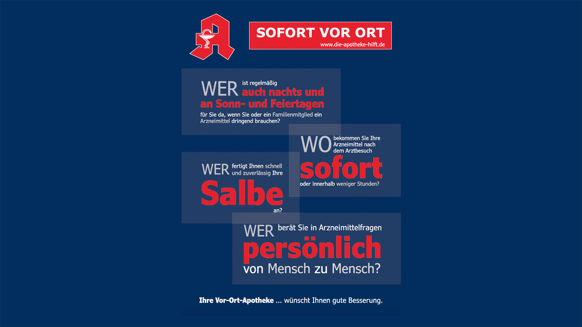 Und deshalb will die Noweda auch die Ärzte ins Boot holen und für die eigene Kampagen begeistern. Kucks Brief lag ein Plakatmotiv bei, das die Bedeutung der Vor-Ort-Apotheke thematisiert. „Wenn Ihnen das Motiv gefällt, würden wir uns sehr freuen, wenn Sie es in Ihrem Wartezimmer aufhängen“, so die Bitte der Noweda. Bei Bedarf schickt die Noweda das Plakat auch „gerollt und knickfrei“ verschiedenen Formaten bis zu DIN A2. Dass das Ganze für die Ärzte kostenlos ist, hätten diese vermutlich auch so erwartet, trotzdem wird es noch einmal explizit erwähnt.