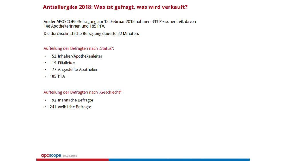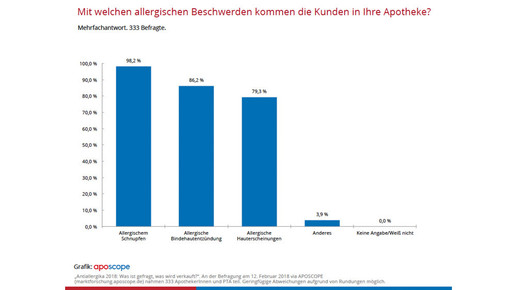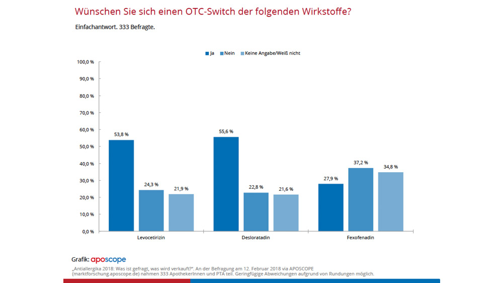Bei allergischem Schnupfen ist das Cortison bei pharmazeutischen Fachkräften ein Mittel der Wahl: Laut der APOSCOPE-Studie „Antiallergika 2018“ setzen Apotheker und PTA auf Mometason – etwa 74 Prozent der Befragten sprechen eine Empfehlung aus. Die Nase vorn hat demnach Mometahexal mit etwa 61 Prozent, gefolgt von MomeAllerg (22 Prozent) und Mometason Ratiopharm (19 Prozent). Den Anstieg des Abverkaufes nach dem OTC-Switch führen die Befragten mit etwa 60 Prozent auf eine bessere Wirksamkeit zurück. Etwa 57 Prozent sehen den Grund in der Therapietreue der Patienten, die bereits auf den Wirkstoff eingestellt sind. Denn die Patienten mit saisonaler allergischer Rhinitis (Heuschnupfen) können sich seitdem ohne Umweg zum Arzt direkt in der Apotheke bevorraten.