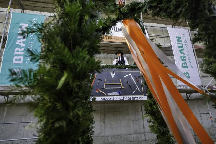 Die Richtzeremonie wurde traditionell mit einem Richtkranz, der an einem Baukran am Gebäude hochgezogen wurde, und einem Richtspruch gefeiert. Den Richtspruch hielt der Polier der Firma Hirsch&Lorenz, Bernd Bischoff. Der stellvertretende Bezirksbürgermeister Falko Liecke freute sich: „Diese Standorterweiterung zählt zu den derzeit größten Investitionsvorhaben hier in Neukölln.“ B. Braun sei im Bezirk ein Traditionsunternehmen und schaffe mit dieser Investition eine dauerhafte Basis für die Produktion.