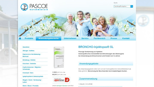 Pascoe hat Aponow auf seiner Internetseite eingebunden. Bei jeder Produktbeschreibung wird auch die Bestellplattform angezeigt. Der Kunde wird über diesen Link in den Pascoe-Shop bei Aponow weitergeleitet und kann dort weitere Produkte des Herstellers in einer beliebigen Apotheke vorbestellen.