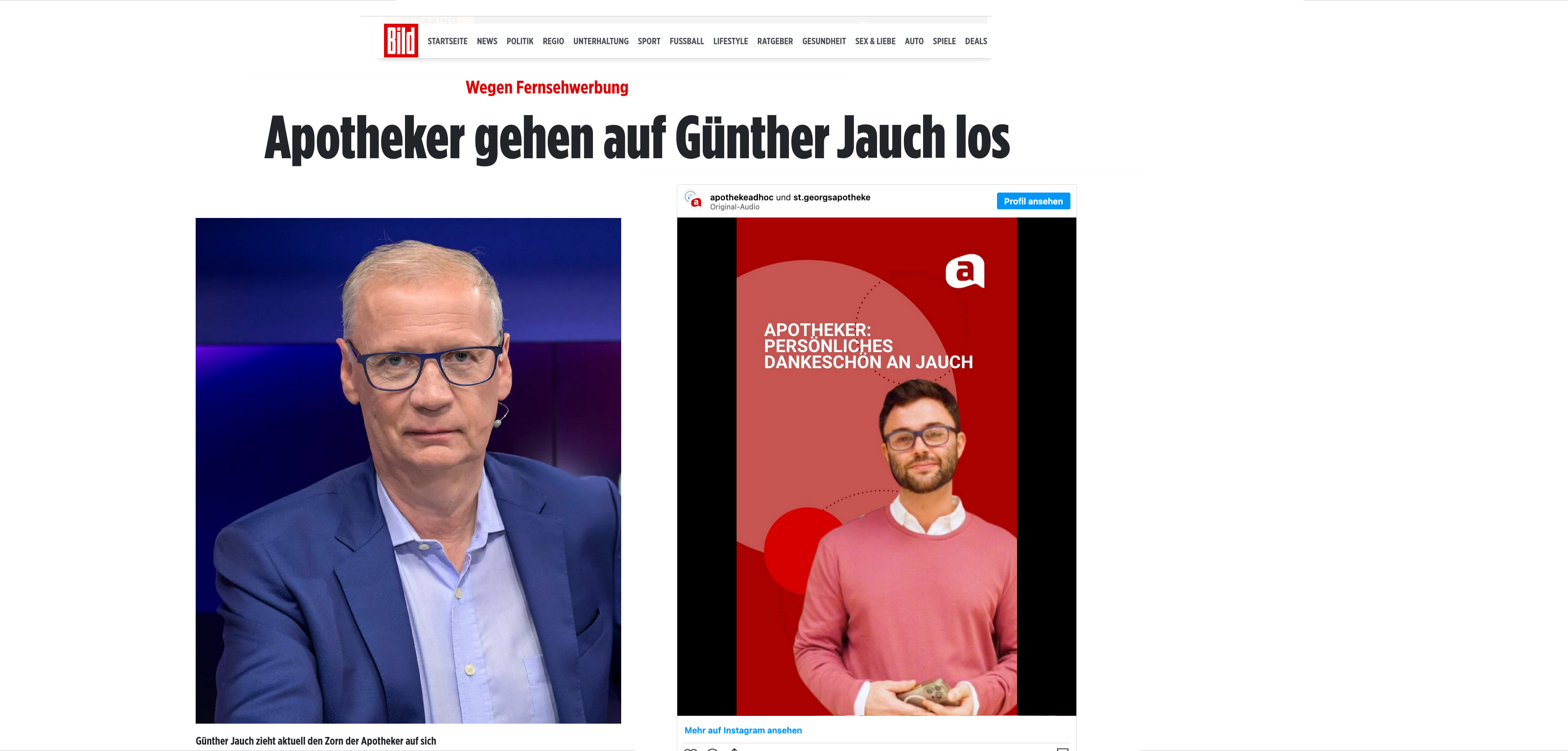 Bild nennt sogar den Hashtag auf Instagram: „Unter #seidkeinejauchs wird Kritik an dem Moderator und seiner Werbung formuliert. Viele Apotheker weisen vor allem auf die persönliche Beratung der Kunden durch Fachpersonal hin.“