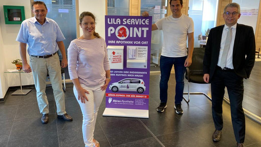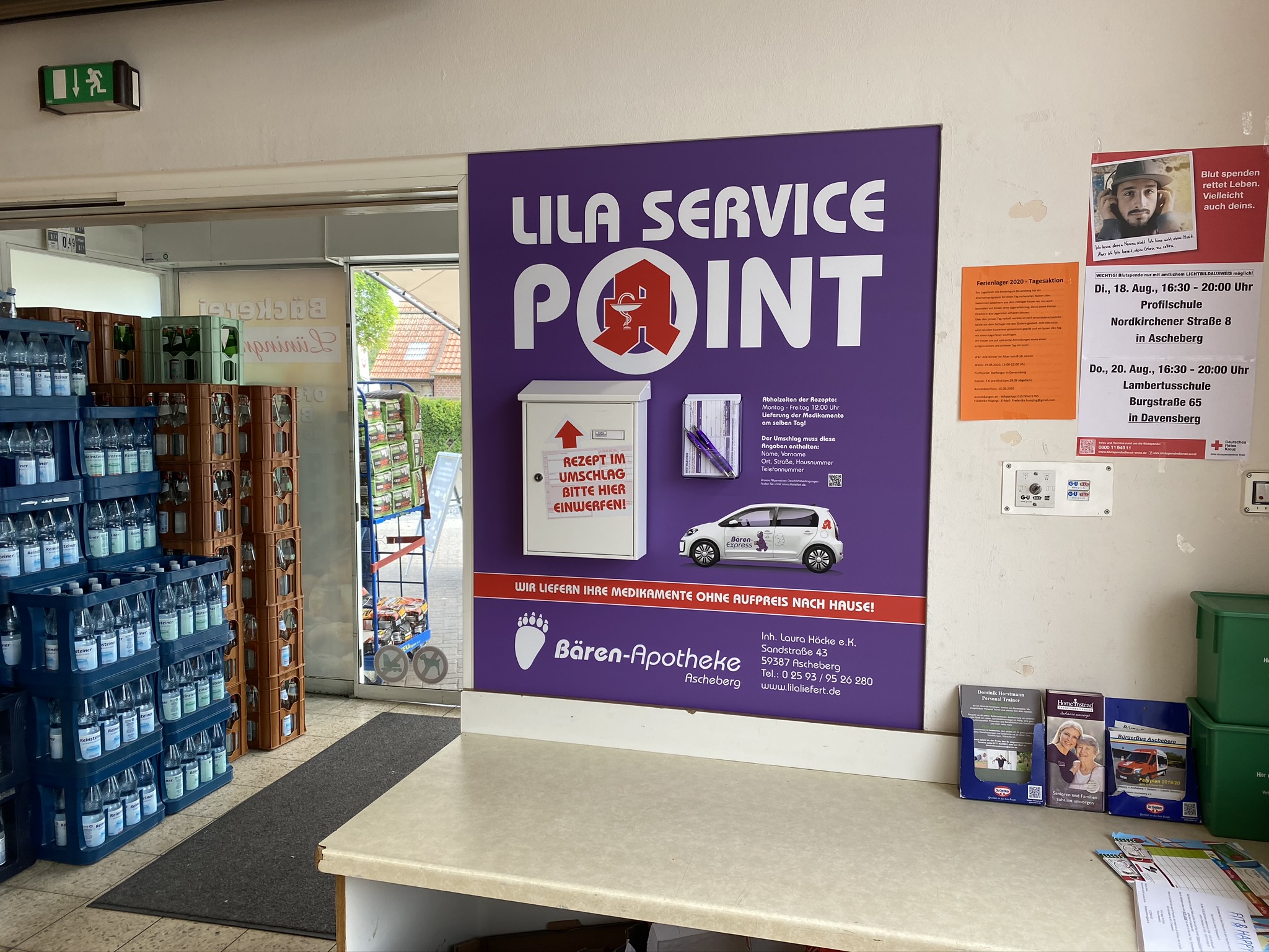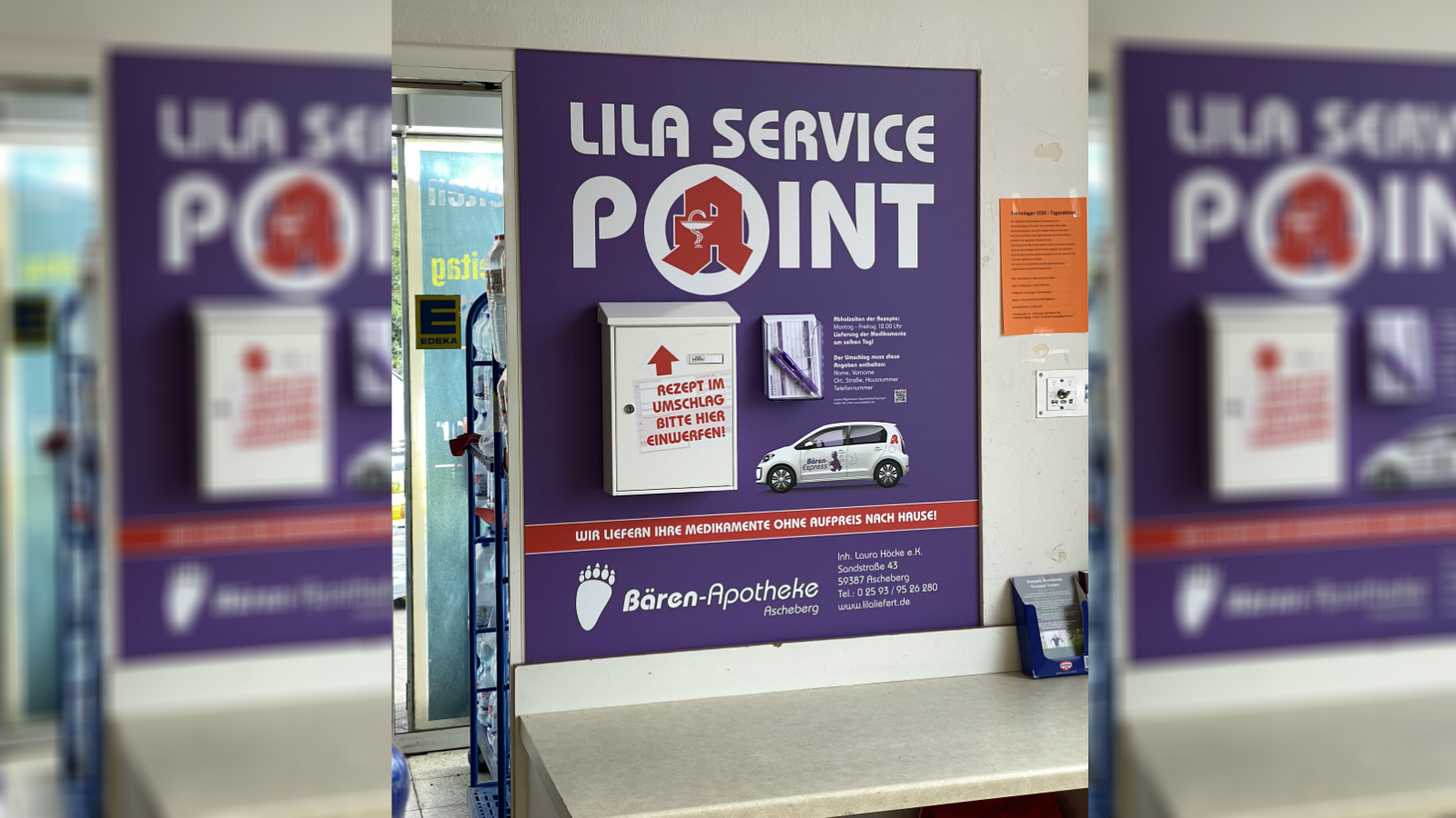 Die ersten „Lila Service Points“ hat Apothekerin Laura Höcke aufgestellt. Die Schwester des Geschäftsführers betreibt in Nordkirchen ihre Apotheke und hat Sammelstellen im benachbarten Südkirchen und Capelle, in einem Supermarkt und einer Filiale der Volksbank. Etwa eine Handvoll Rezepte täglich werden Justus Höcke zufolge eingeworfen. Es geht vor allem um das Marketing und in der Fläche präsent zu sein. Gerade mit Einführung des E-Rezepts sei es wichtig, die Kunden daran zu erinnern, dass sie nicht in die Apotheke gehen müssen, um dort einzukaufen, ergänzt Eiberger.