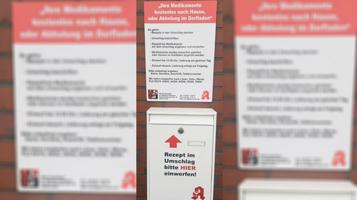 Kunden des Dorfladens können dort Rezepte in einen Umschlag stecken, diesen beschriften und einwerfen, auch rezeptfreie Medikamente können so bestellt werden. Die Lieferung nach Hause ist in der Region kostenlos, die Kunden können ihre Medikamente auch im Dorfladen abholen. Was bis mittags bestellt wird, wird noch am selben Tag ausgefahren, lautet das Versprechen.