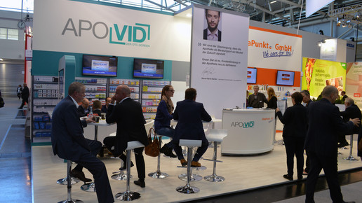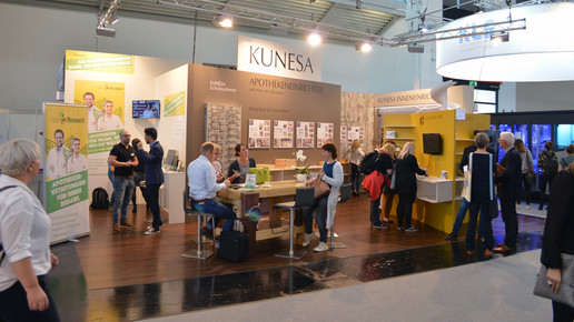 Auf 84 Quadratmetern präsentierte sich APOTHEKE ADHOC in bester Lage auf der Schlossallee. Mit dabei waren außerdem APOSCOPE, PTA Live – das Ressort für Themen rund um die Tätigkeiten als PTA – und Apothekia, das große PTA-Wissensportal.