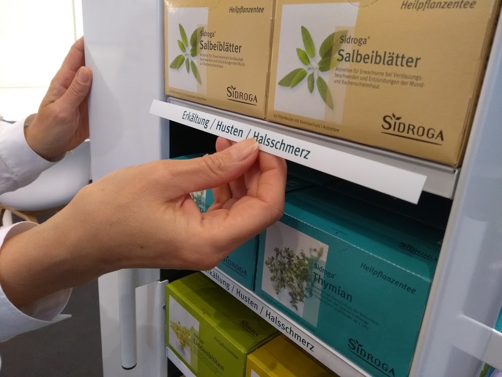 Die häufigsten Produktkategorien für die mobilen Ständer sind Kosmetik, Lebensmittel und pflanzliche Produkte. Nach der Erstbestückung durch den Hersteller übernehmen die Apothekenmitarbeiter in der Regel selbst das Einräumen. Kunden nutzen die flexiblen Ständer zur Selbstbedienung, sie werden aber auch in das Beratungsgespräch mit einbezogen.