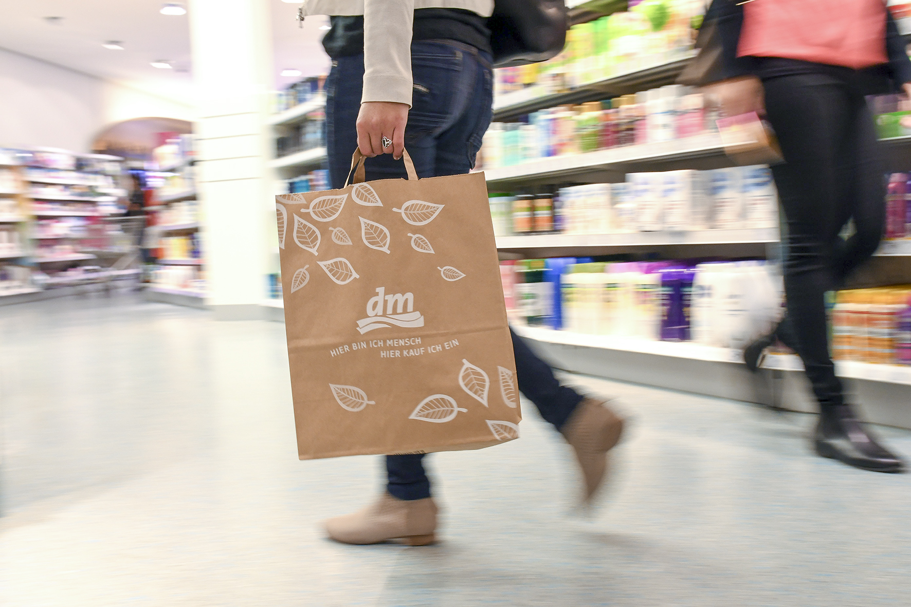dm-Kunden können ihre Online-Bestellung in München nach vier Stunden abholen. Die Mitarbeiter packen die Produkte in Papiertüten. Je nach Bestellzeitpunkt und Öffnungszeit des ausgewählten Marktes kann sich die Bereitstellung auf den folgenden verkaufsoffenen Tag verschieben.