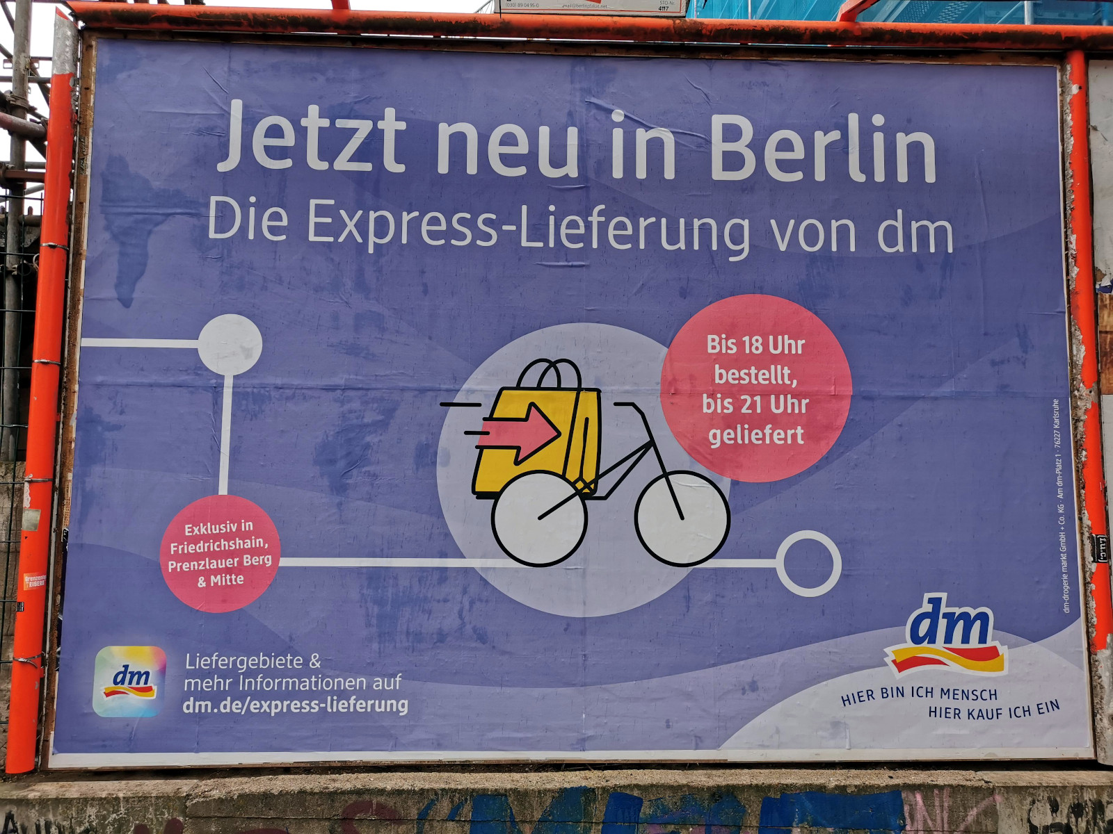 Die Drogeriekette dm liefert in Berlin, München und Wien ab sofort Bestellungen von Kund:innen nach Hause.