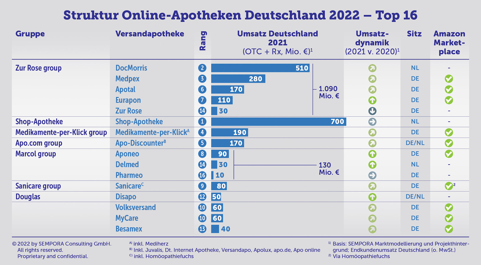 Mehrere tausend Apotheken haben eine Versanderlaubnis, doch nur eine Handvoll spielt eine Rolle am Markt. Und auch diese gehören nicht selten zu einem Verbund mit mehreren Marken. Grund sind Übernahmen – und die Mehrfachpositionierung in den Suchmaschinen.