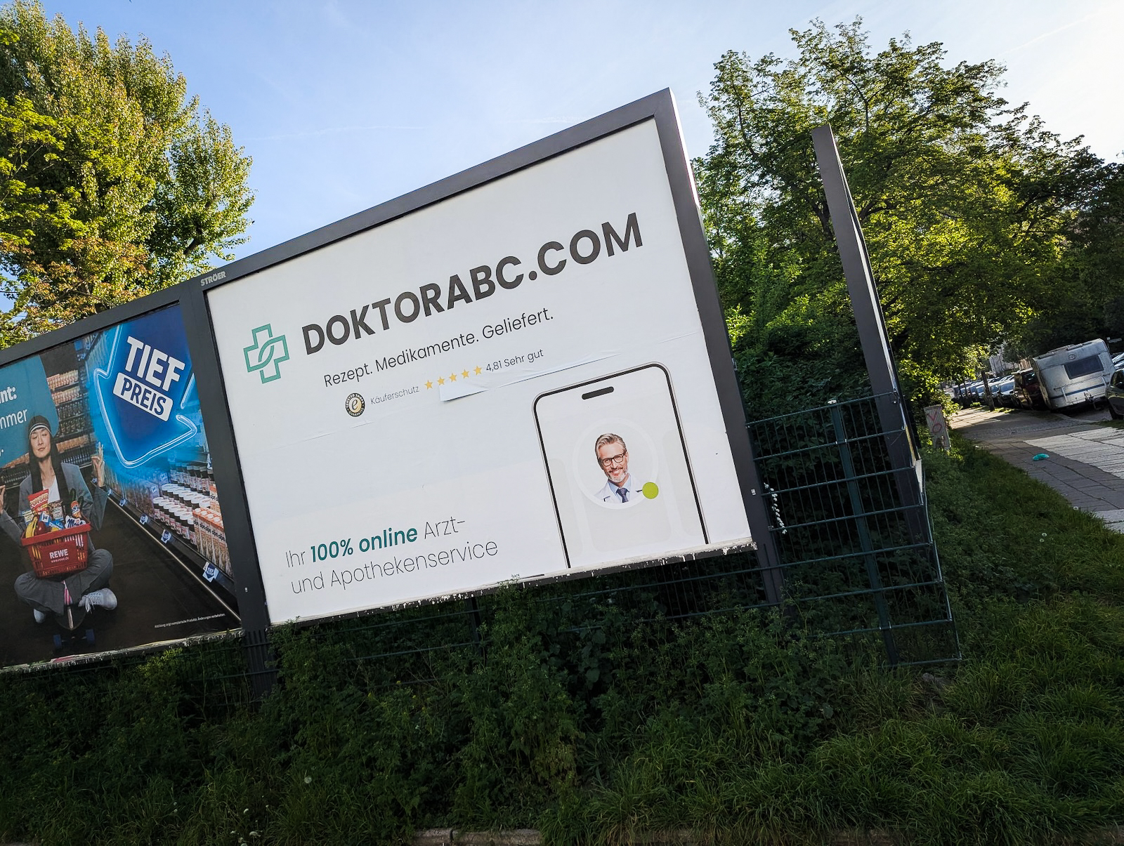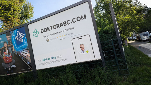 DoktorABC wirbt derzeit auf Plakaten für sein Angebot. Verschreibungspflichtige Medikament einfach im Internet bestellen, so die Botschaft. Dass man dafür tief in die Tasche greifen muss, erwähnt die Plattform nicht.