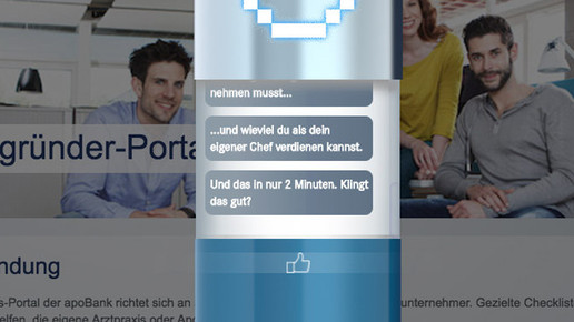 Das Dr. Bot-Angebot begründet die Apobank mit dem Hinweis, dass junge Heilberufler, die als Angestellte arbeiten, nur ihre Gehälter kennen. Aber was bleibt einem Selbstständigen am Monatsende von seiner Praxis oder Apotheke? „Fragen nach Verdienstmöglichkeiten im Zuge einer Existenzgründung von Ärzten und Apothekern sind von vielen Faktoren abhängig, die berücksichtigt werden müssen. Mit Dr. Bot bieten wir nun eine neue und innovative Applikation an, die Orientierungswerte zu Verdienstmöglichkeiten und Investitionssummen für junge Angestellte bereitstellt – und das rund um die Uhr. Das breite Beratungsangebot der Apobank schließt mit vertiefenden Informationen zum Thema Existenzgründung daran an“, wirbt Daniel Zehnich, Bereichsleiter Gesundheitsmärkte und -politik der Apobank.