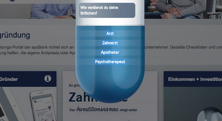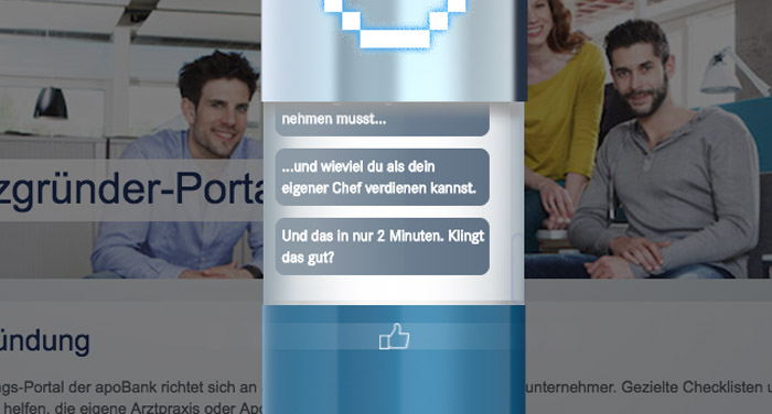 Das Dr. Bot-Angebot begründet die Apobank mit dem Hinweis, dass junge Heilberufler, die als Angestellte arbeiten, nur ihre Gehälter kennen. Aber was bleibt einem Selbstständigen am Monatsende von seiner Praxis oder Apotheke? „Fragen nach Verdienstmöglichkeiten im Zuge einer Existenzgründung von Ärzten und Apothekern sind von vielen Faktoren abhängig, die berücksichtigt werden müssen. Mit Dr. Bot bieten wir nun eine neue und innovative Applikation an, die Orientierungswerte zu Verdienstmöglichkeiten und Investitionssummen für junge Angestellte bereitstellt – und das rund um die Uhr. Das breite Beratungsangebot der Apobank schließt mit vertiefenden Informationen zum Thema Existenzgründung daran an“, wirbt Daniel Zehnich, Bereichsleiter Gesundheitsmärkte und -politik der Apobank.