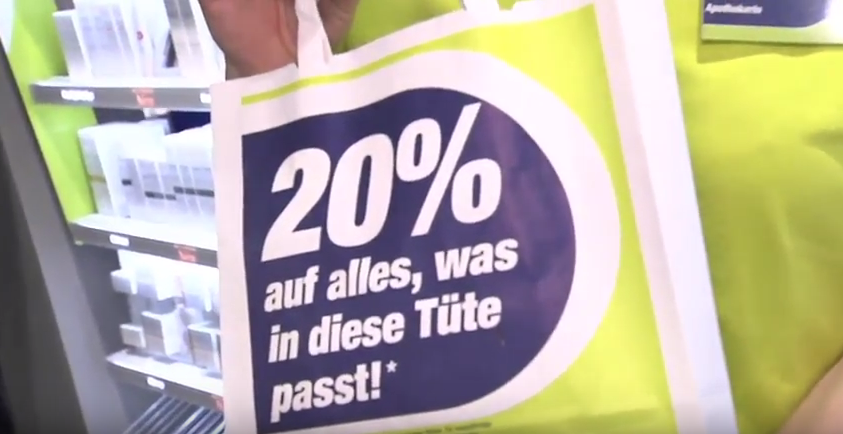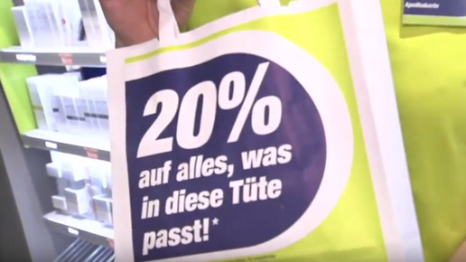 Bauer hat Kunden 20 Prozent auf alle Freiwahlprodukte gewährt, die in die Papiertüte passten. Der Rabatt war nur am Jubiläumstag gültig. Die Papiertaschen waren in den typischen grün-blauen Easy-Farben bedruckt. Aufmerksamkeitsstark stand das Angebot groß geschrieben auf den Tüten. Darunter: „Nochmal reduziert vom easyPreis!“. Die Aktionstüten kamen bei den Kunden gut an.