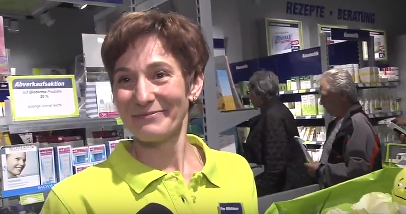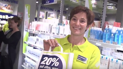In dem knapp zweieinhalb Minuten dauernden Spot erklärt die Apothekerin, warum die Kunden zu Easy kommen: Die große Auswahl und die guten Preise interessierten am meisten. Zudem könne das Team mit Freundlichkeit und Ehrlichkeit punkten. In der Apotheke sei nichts gespielt, sagt sie. Insgesamt beschäftigt Bauer dort 15 Mitarbeiter. Außerdem kommen Kunden zu Wort.