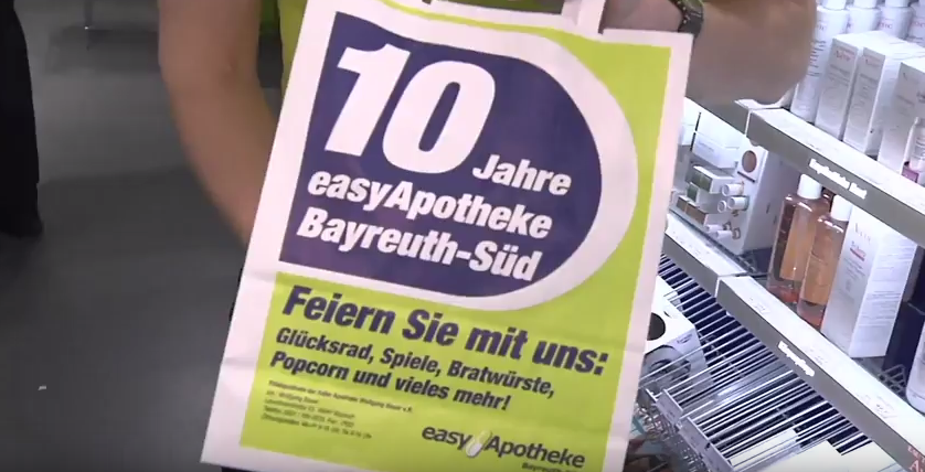 Wolfgang Bauer war mit seiner Easy-Apotheke in Bayreuth-Süd ein Vorreiter. Vor zehn Jahren eröffnete er den Standort in der oberfränkischen Stadt. Das Jubiläum wurde gefeiert – mit Aktionen für Kunden und einem besonderen Geburtstagsrabatt: Nachlass gab es auf alle Produkte, die in die Jubiläumstasche passten.