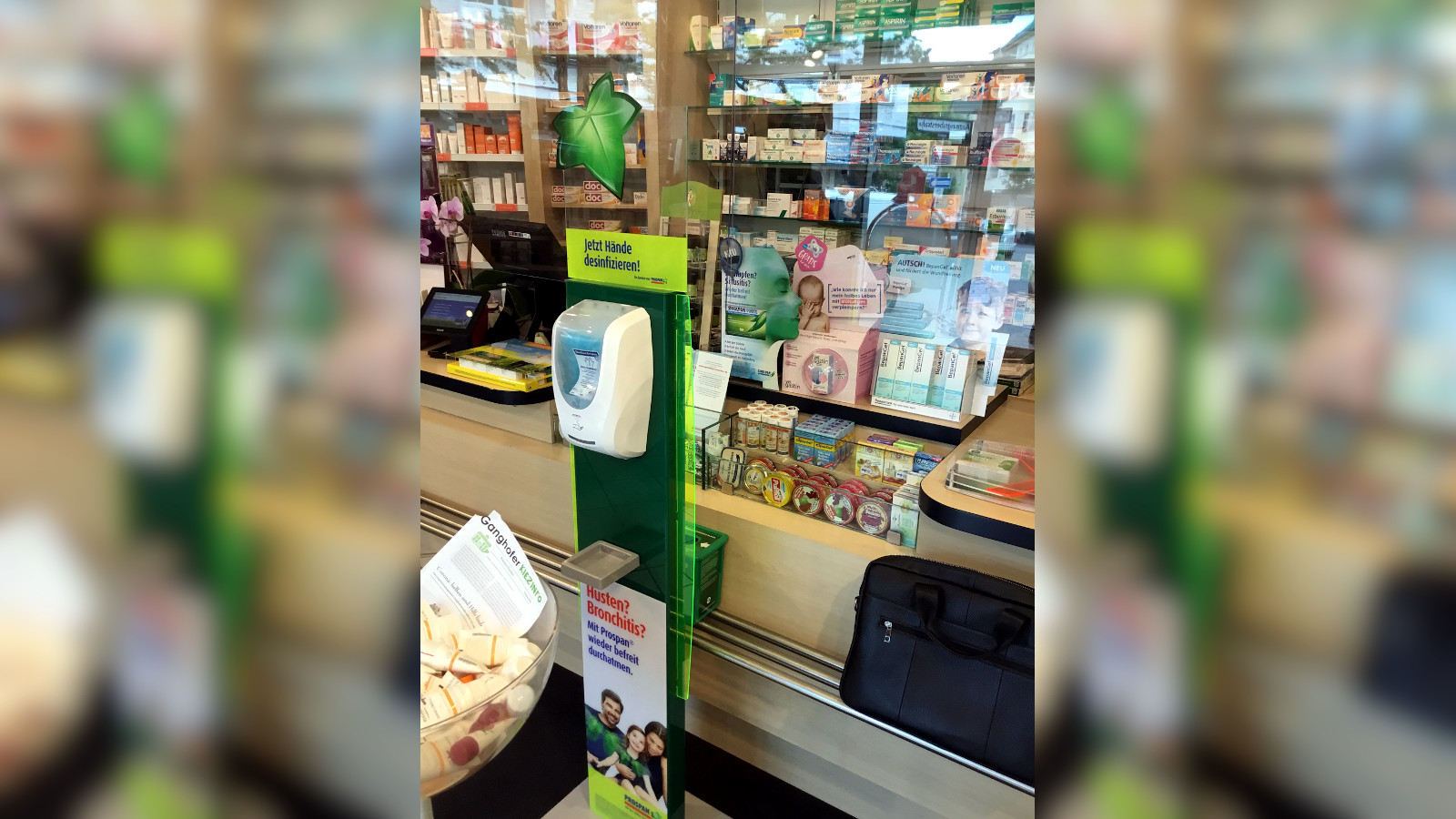 Eingesetzt werden soll der Aufsteller im Eingangsbereich von Apotheken oder Ärztehäusern – also genau dort, wo Menschen ihre Hände häufig desinfizieren. So sollen Personal und Besucher sowie allen Menschen, mit denen die Kunden nachträglich in Kontakt kommen, zugute kommen.