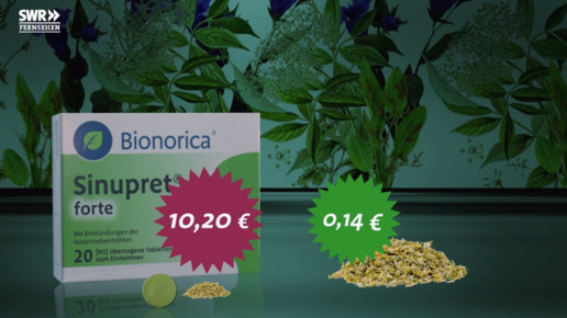 Zugelassen ist Sinupret bei Nasennebenhöhlenentzündungen, Popp allerdings verriet sein Geheimrezept: Er nimmt das Arzneimittel gleich am Anfang der Erkältung ein. Die SWR-Reporter kritisierten aber den Preis: 156 mg Kräuter für 10,20 Euro – kaufe man die gleiche Menge in einem Kräuterladen, zahle man nur 14 Cent. Ein Verkäufer durfte die Vorteile der Tees gegenüber den Dragees erläutern. Nicht berücksichtigt wurde, dass Sinupret ausgezogene Pflanzenextrakte enthält.