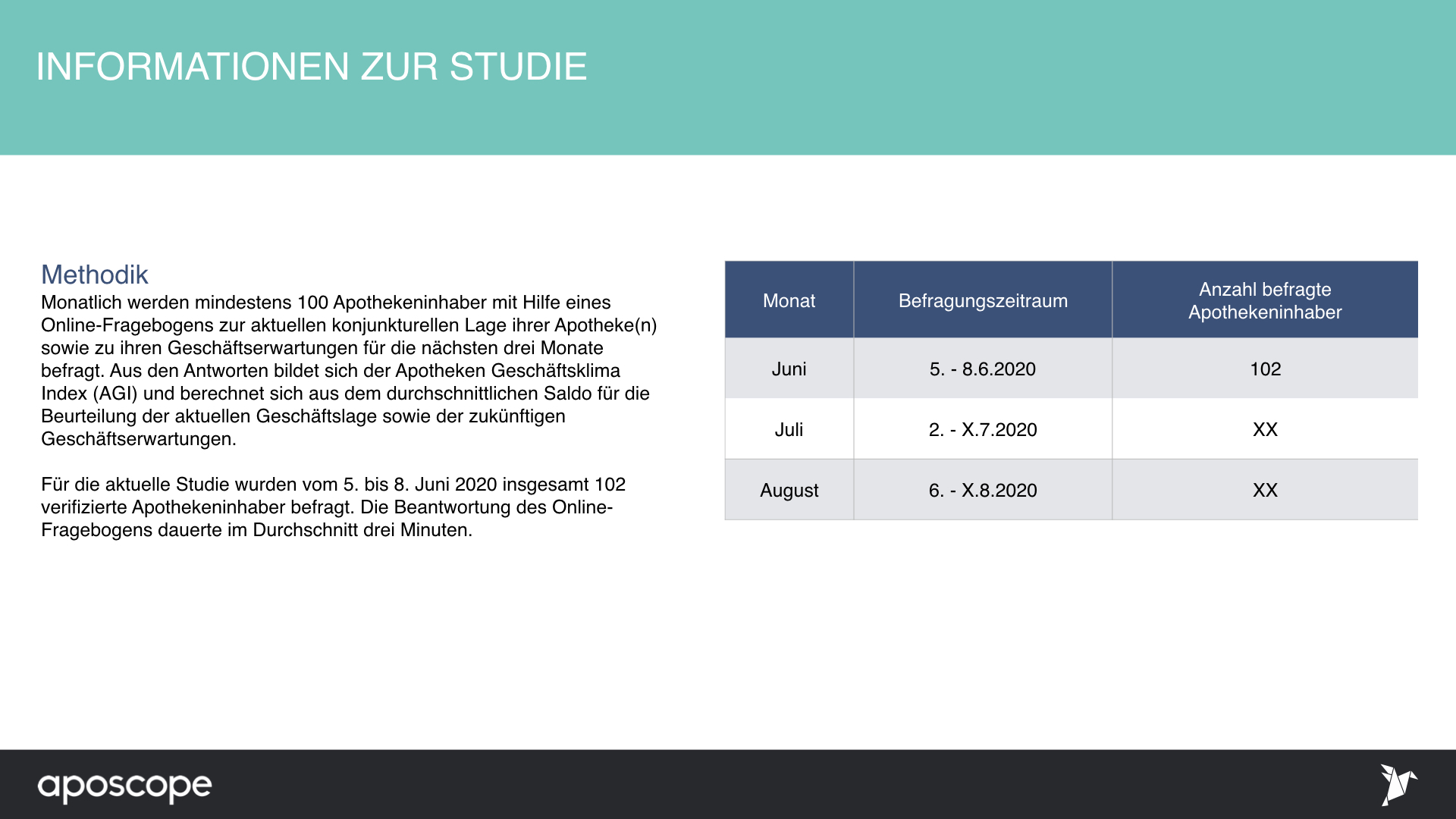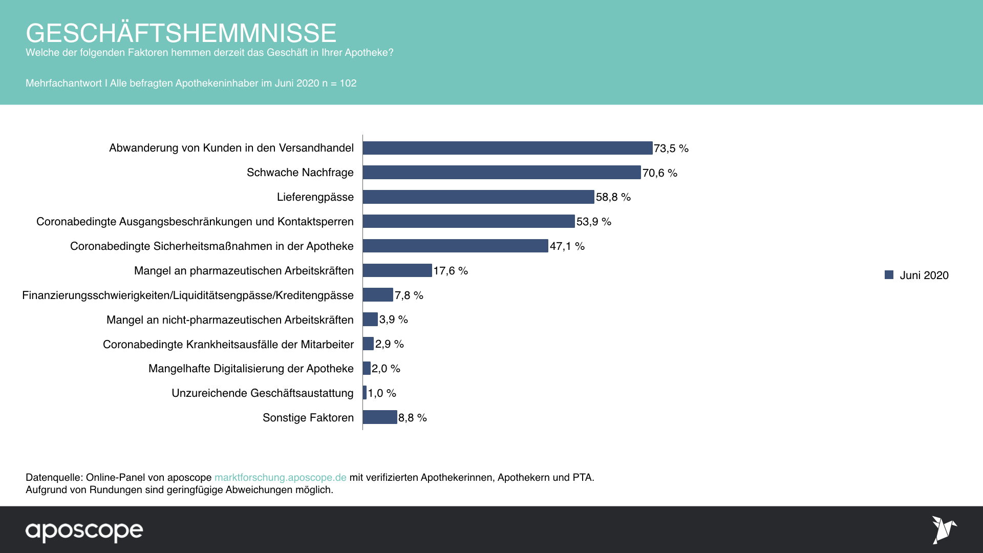 An der Befragung nahmen vom 5. bis 8. Juni 2020 insgesamt 102 verifizierte Apothekeninhaber teil.