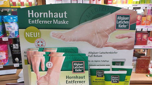 Allgäuer Latschenkiefer (Dr. Theiss Naturwaren) hat pünktlich zum Frühling eine Hornhaut Entferner Maske in die Apotheken gebracht. Das Produkt besteht aus einem Aktivkonzentrat, zwei Socken und einem Sole Fußbad. Innerhalb von zwei Wochen sollen sich die abgestorbenen Hautzellen und übermäßige Hornhaut ablösen. Den Schälprozess löst die im Aktivkonzentrat enthaltene Kombination aus Salicylsäure, Fruchtsäuren (Ananas) und Pflanzenextrakten (Zitrone, Kaktusfeige, Passionsfrucht, Honig) aus. Außerdem sind Milch- und Glykolsäure enthalten.
