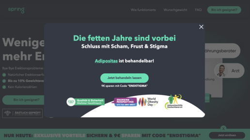 Die Plattform GoSpring hat ein neues Angebot im Portfolio: Im Rahmen von „GoLight“ kann man sich rezeptpflichtige Abnehmspritzen mit dem Wirkstoff Liraglutid schicken lassen – versprochen wird ein Gewichtsverlust, der auch die Anwendung von Potenzmitteln überflüssig machen soll: „Hol Dir die ultimative Erleichterung für Deine Gesundheit & Potenz“, lautet nur eine von zahlreichen zweifelhaften Werbeaussagen und Wirkversprechen. Derweil hat der Medienkonzern ProSiebenSat.1 seinen Anteil an der Betreibergesellschaft aufgestockt.